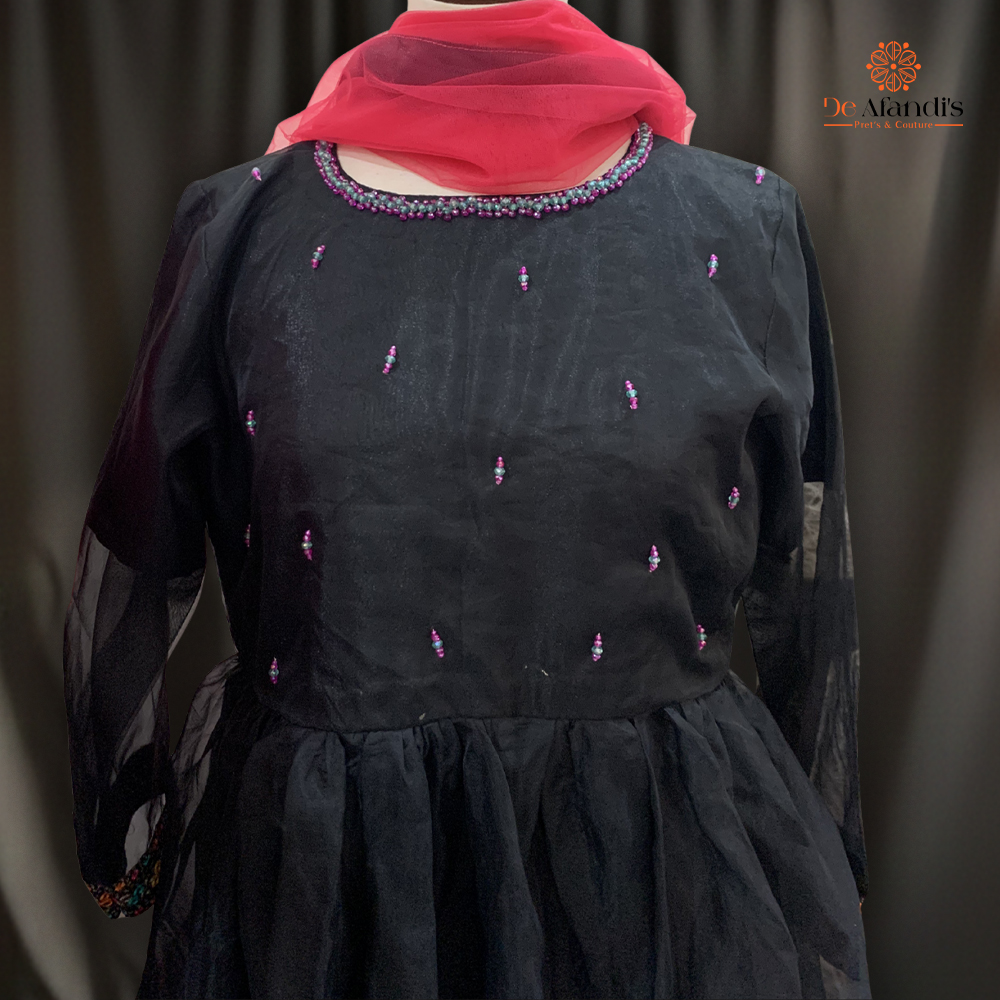 Elegant Black Organza Frock 3PC with Crystal Detailing Original price was: ₨9,500.₨7,200Current price is: ₨7,200.