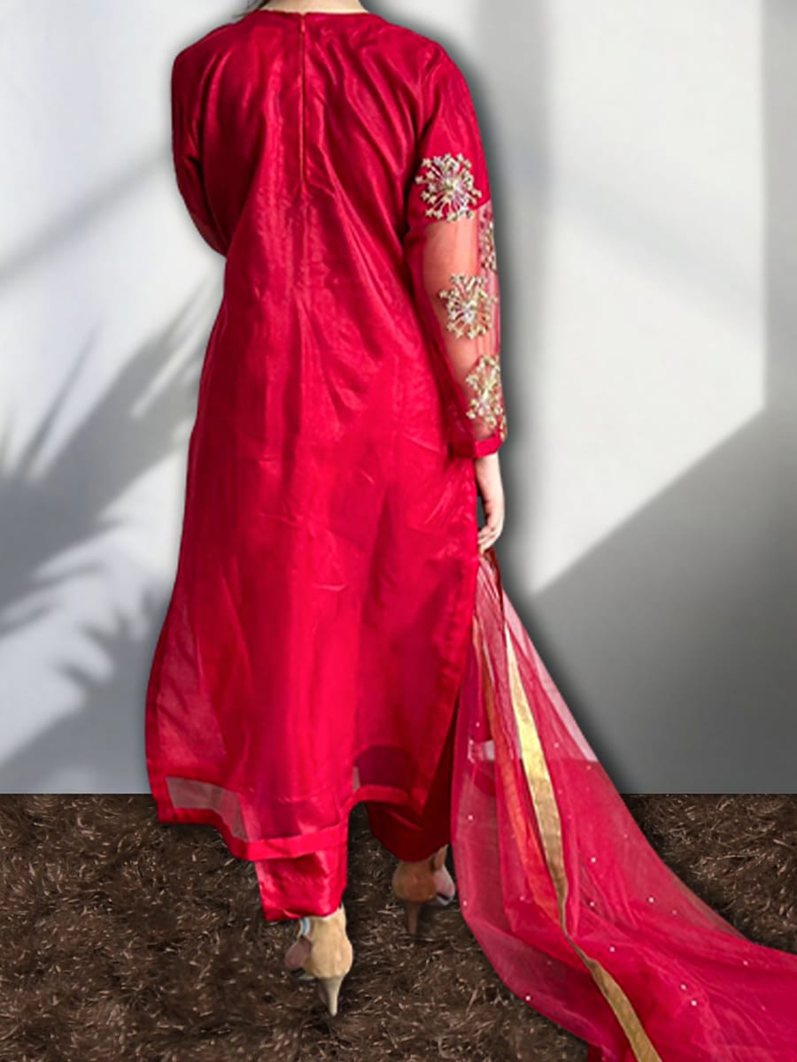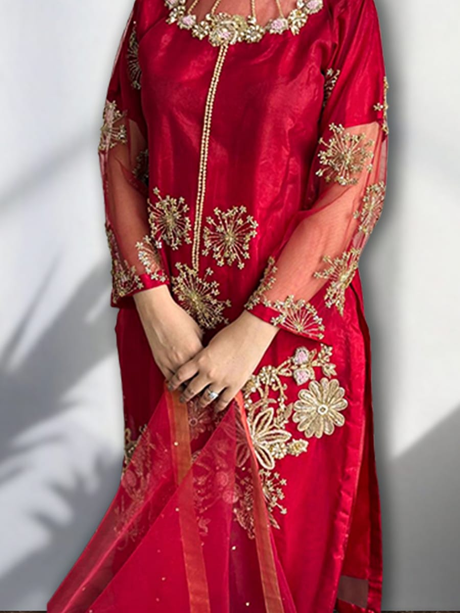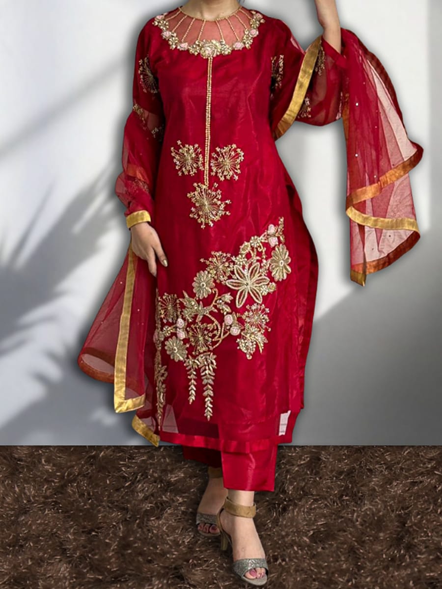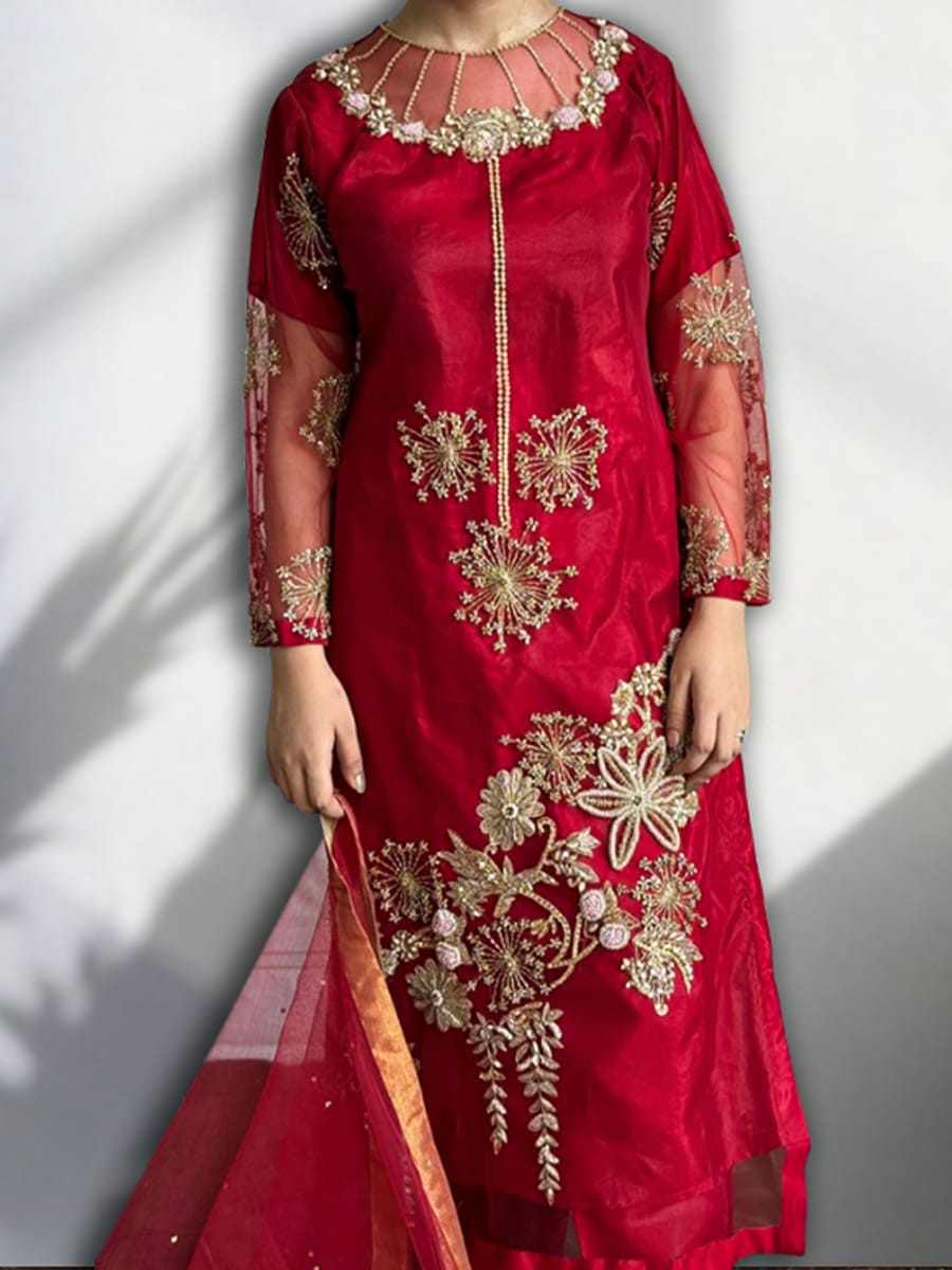 / Golden Zari 3Pc Diamond Net Suit