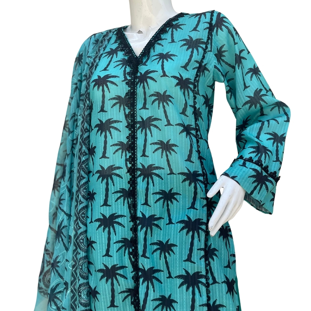 Green 3pcs Printed Lawn with Chiffon Dupatta