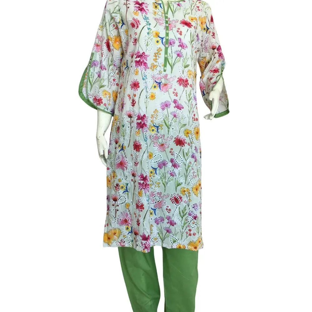 Light Green & Pink 3pcs Chikankaari lawnLight Green & Pink 3pcs Chikankaari lawn