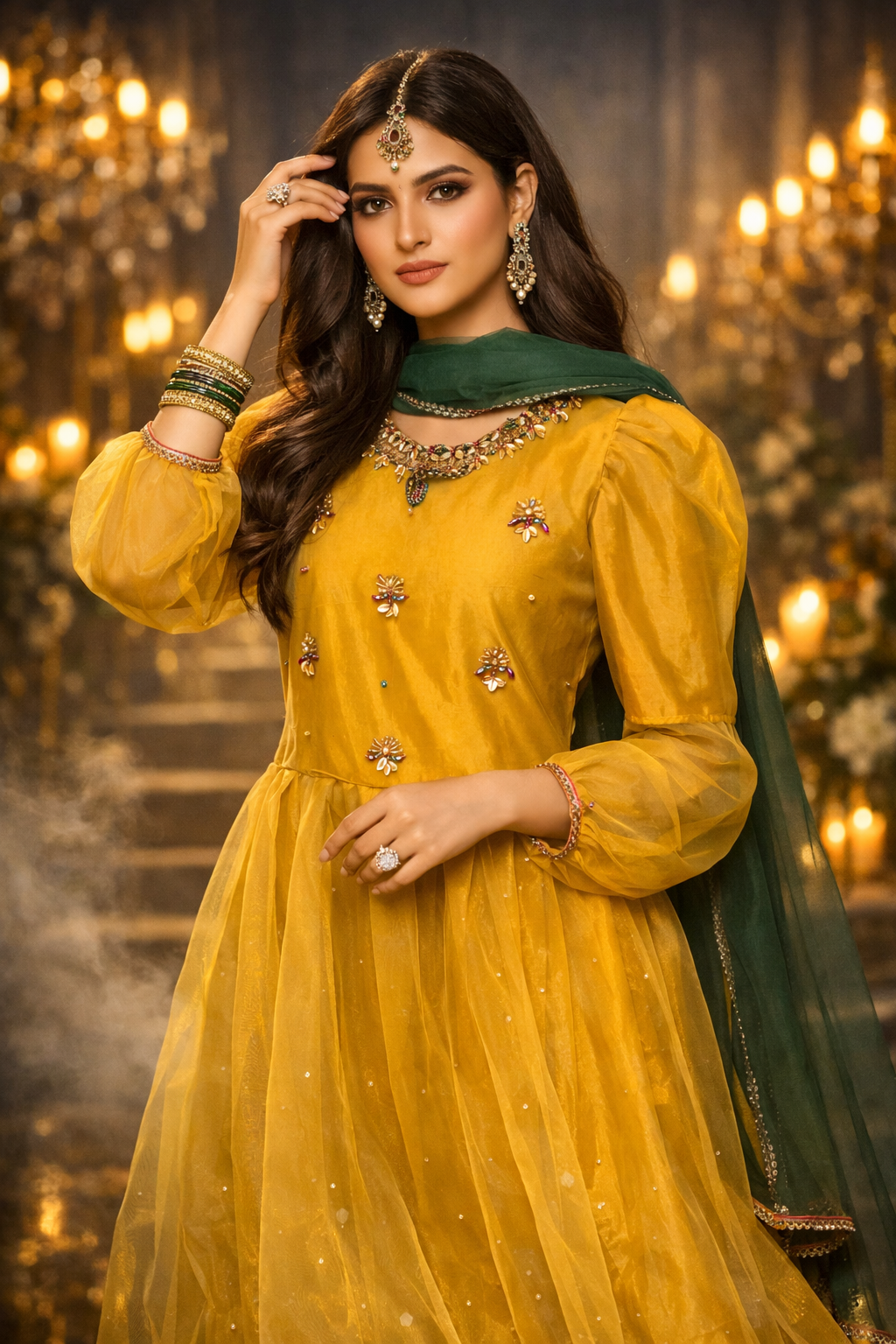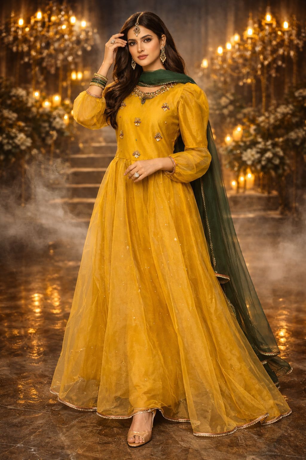 Mustard color embellished net frock Original price was: ₨11,000.₨8,500Current price is: ₨8,500.