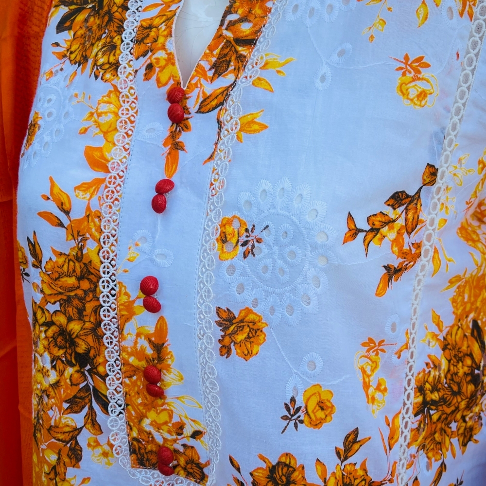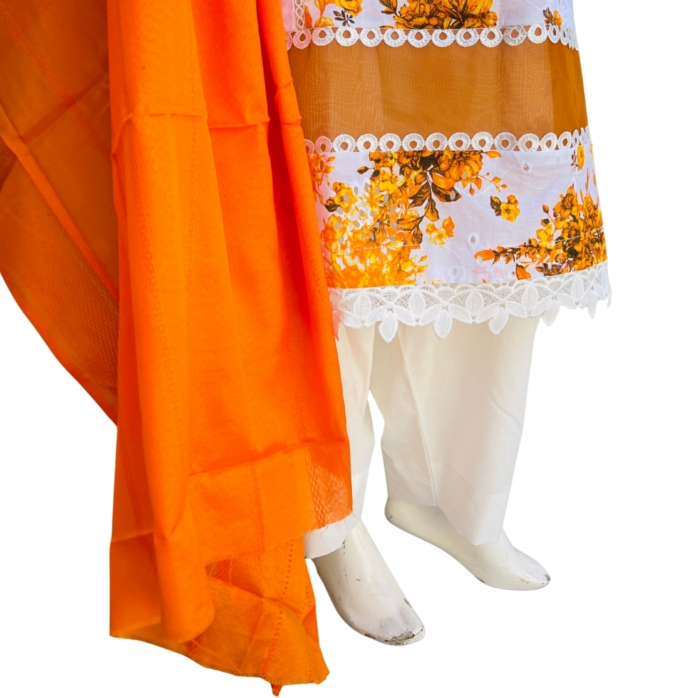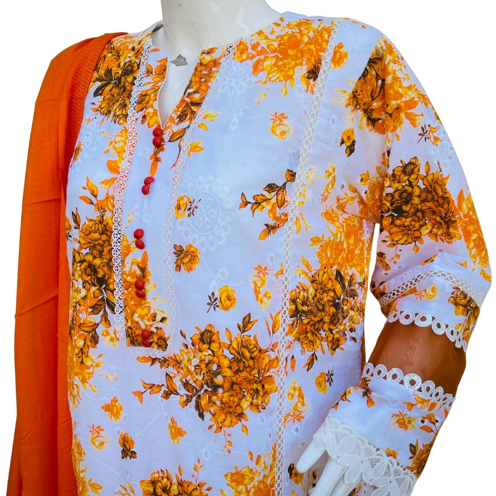 Orange & White Chicken Kari 3pcs Lawn quantity