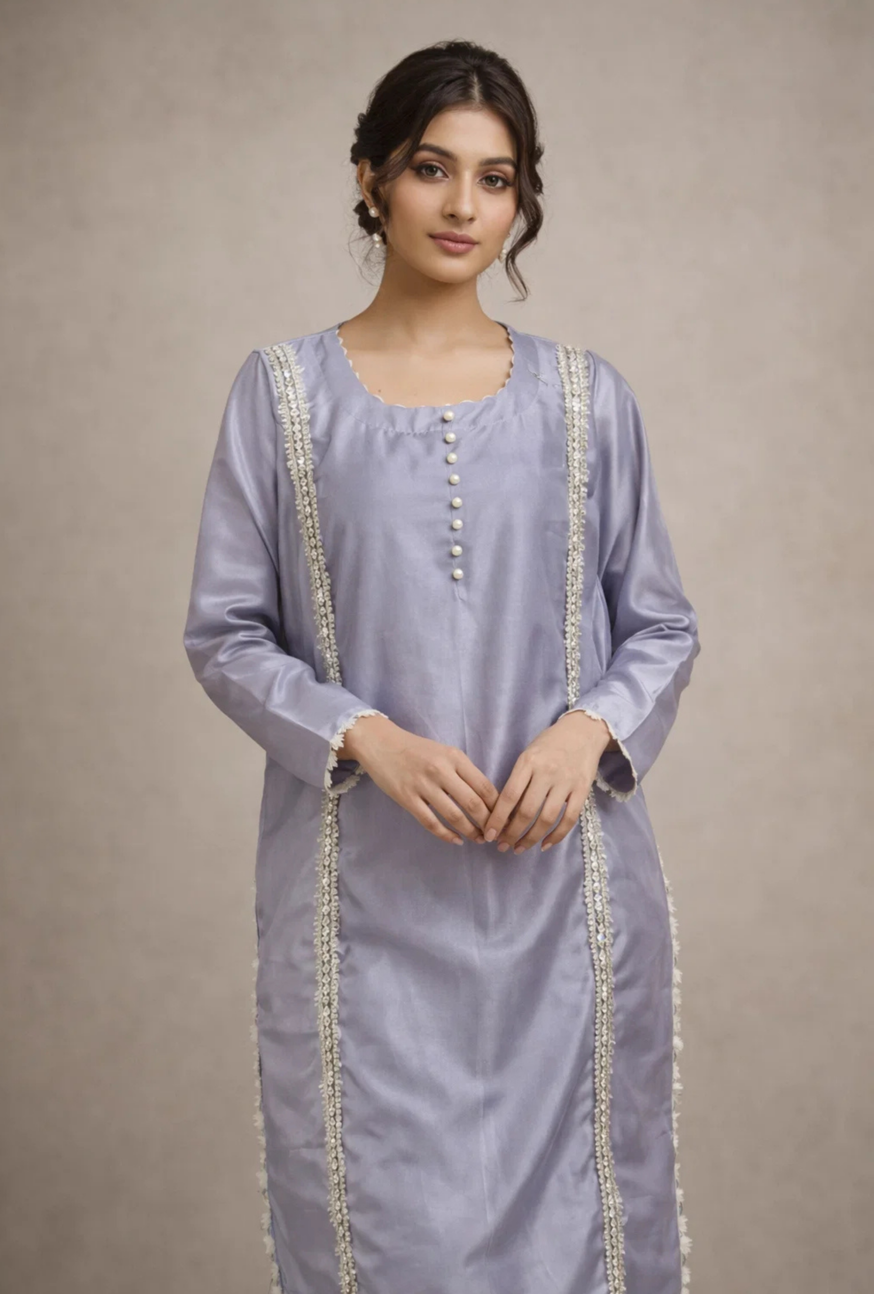 Product Details: A graceful lilac silk 3-piece suit designed with premium fabric and elegant detailing. Perfect for formal gatherings, festive occasions, and sophisticated everyday wear.