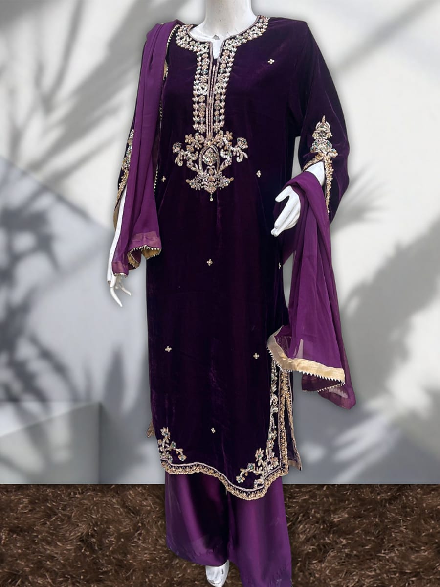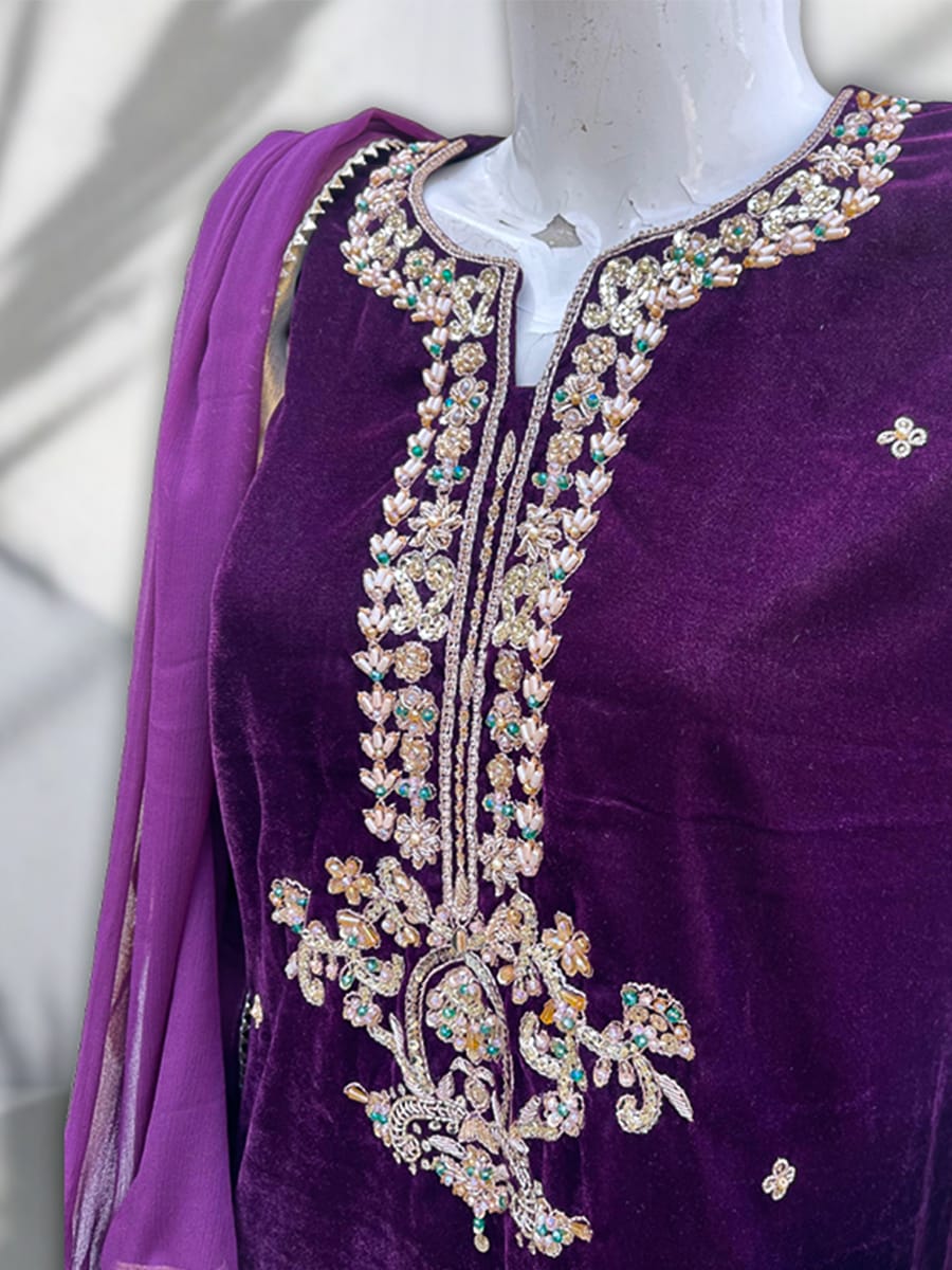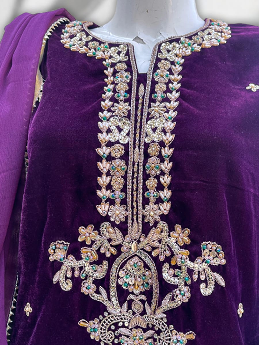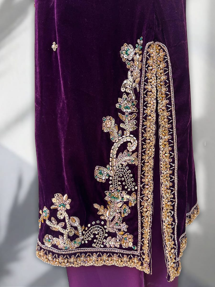 • Micro 9000 velvet shirt heavily embellished with zari work