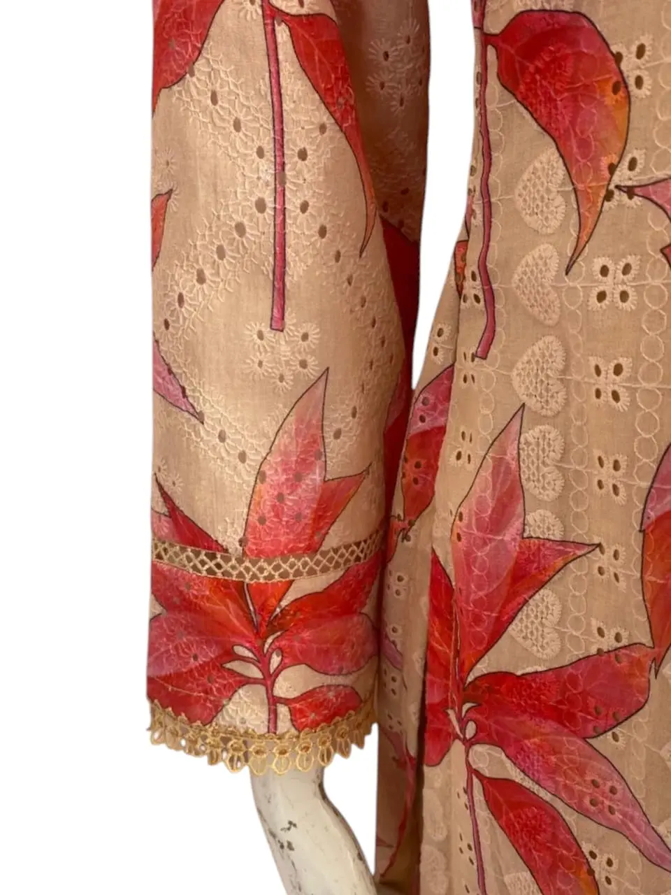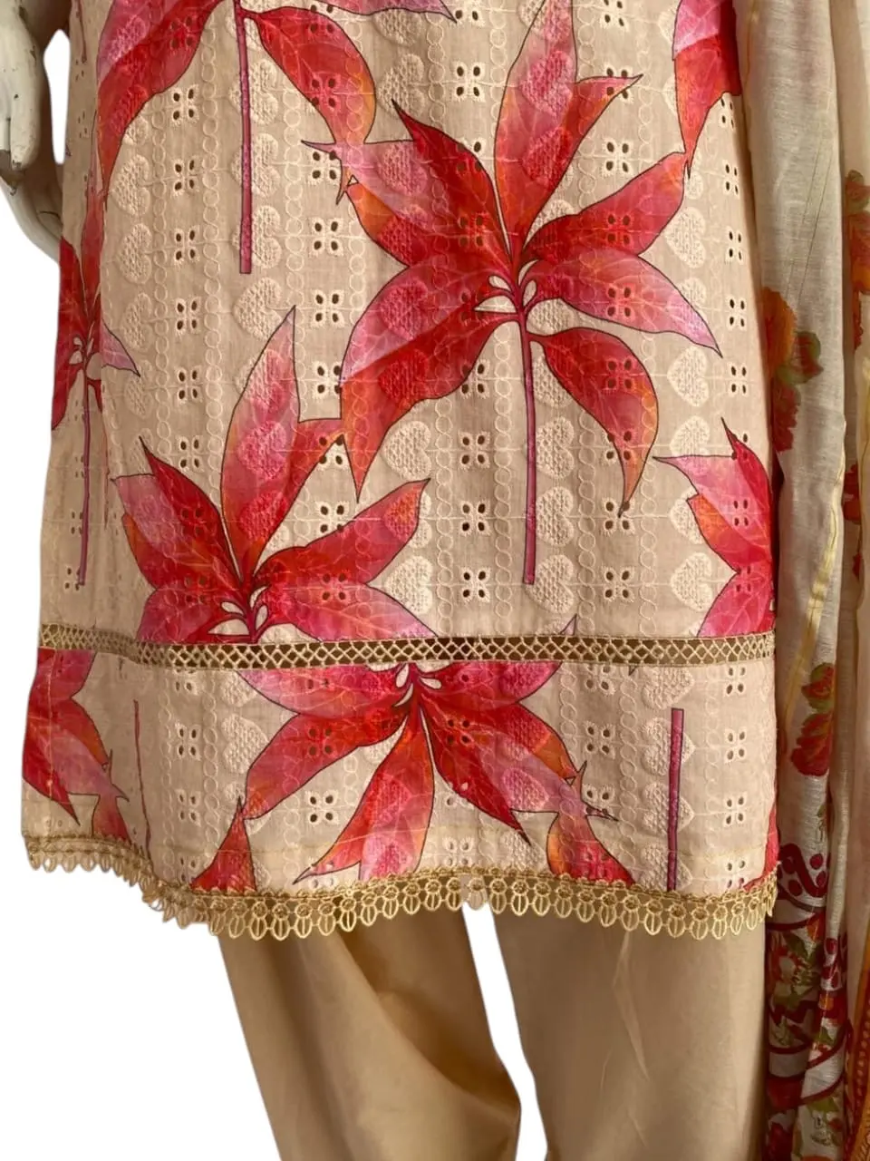 Skin/Pink Floral Printed 3pcs Chickenkari Lawn