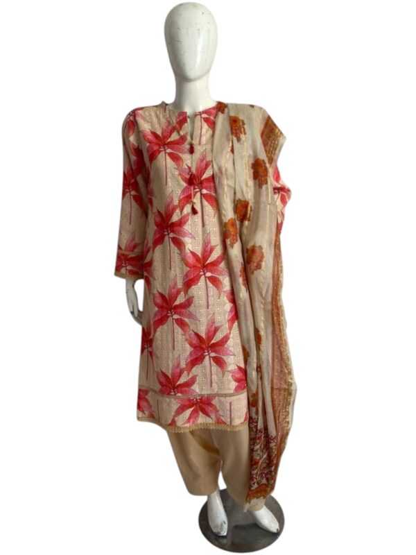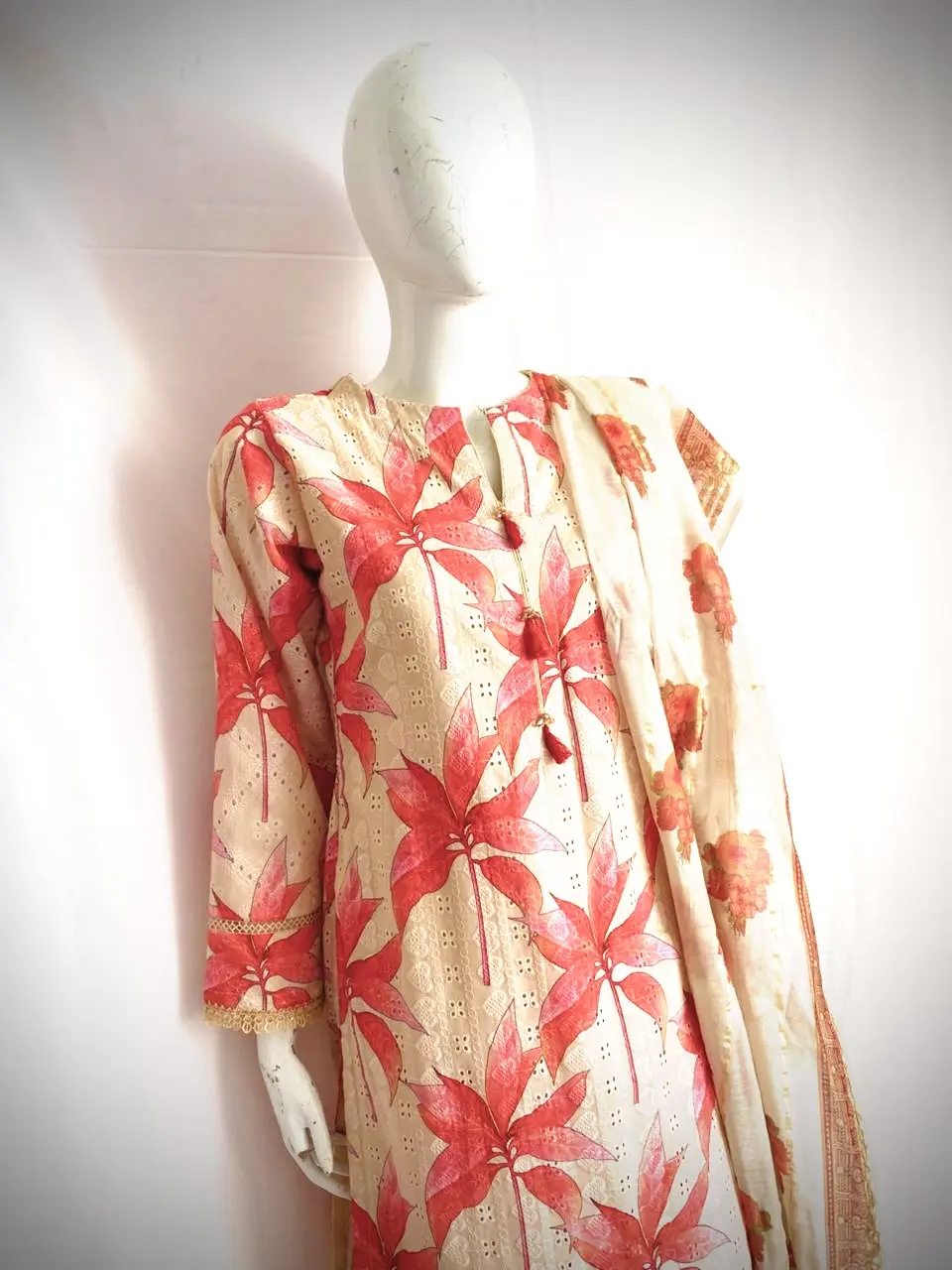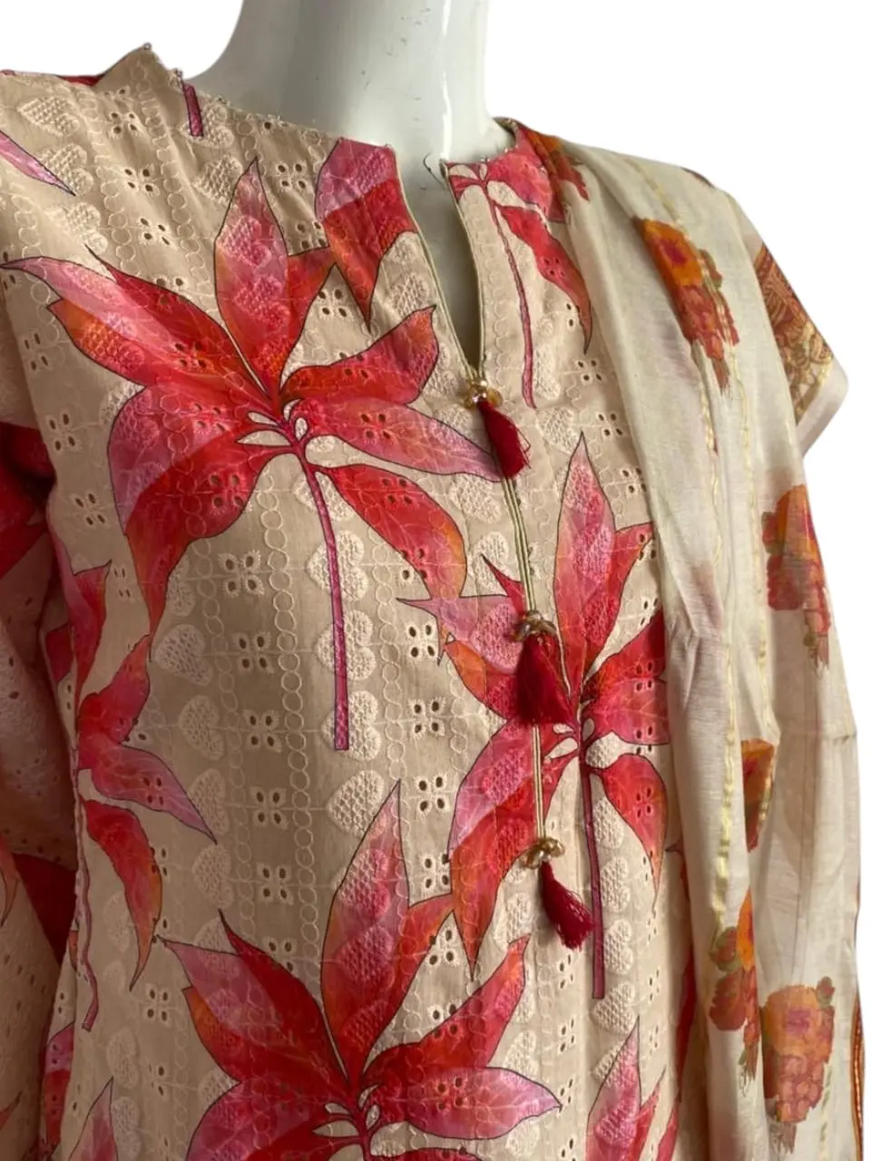 / Skin/Pink Floral Printed 3pcs Chickenkari Lawn
